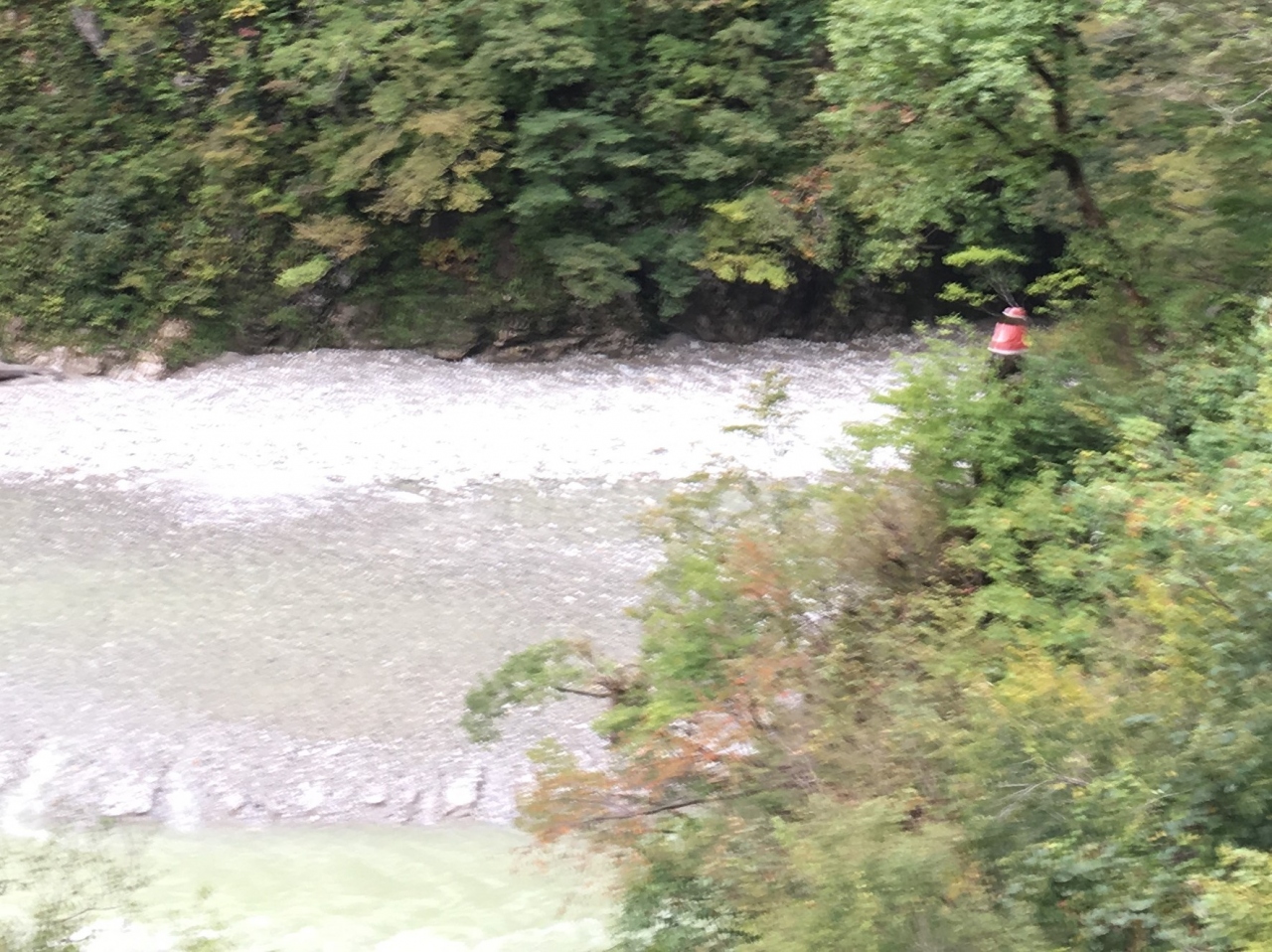 宇奈月駅を出て 約20分くらい コトコト だんだんと 山間の深い中に入っていくと 黒薙駅に着きます。 そのちょっと手前のとこに 赤い頭巾をかぶった 仏様に見受けられる 仏石がありました。 見過ごしそうで 慌てて シャッターを切ったのですが、 揺れながらで ちょっとボケてしまいました。。。(2016.10黒部15)