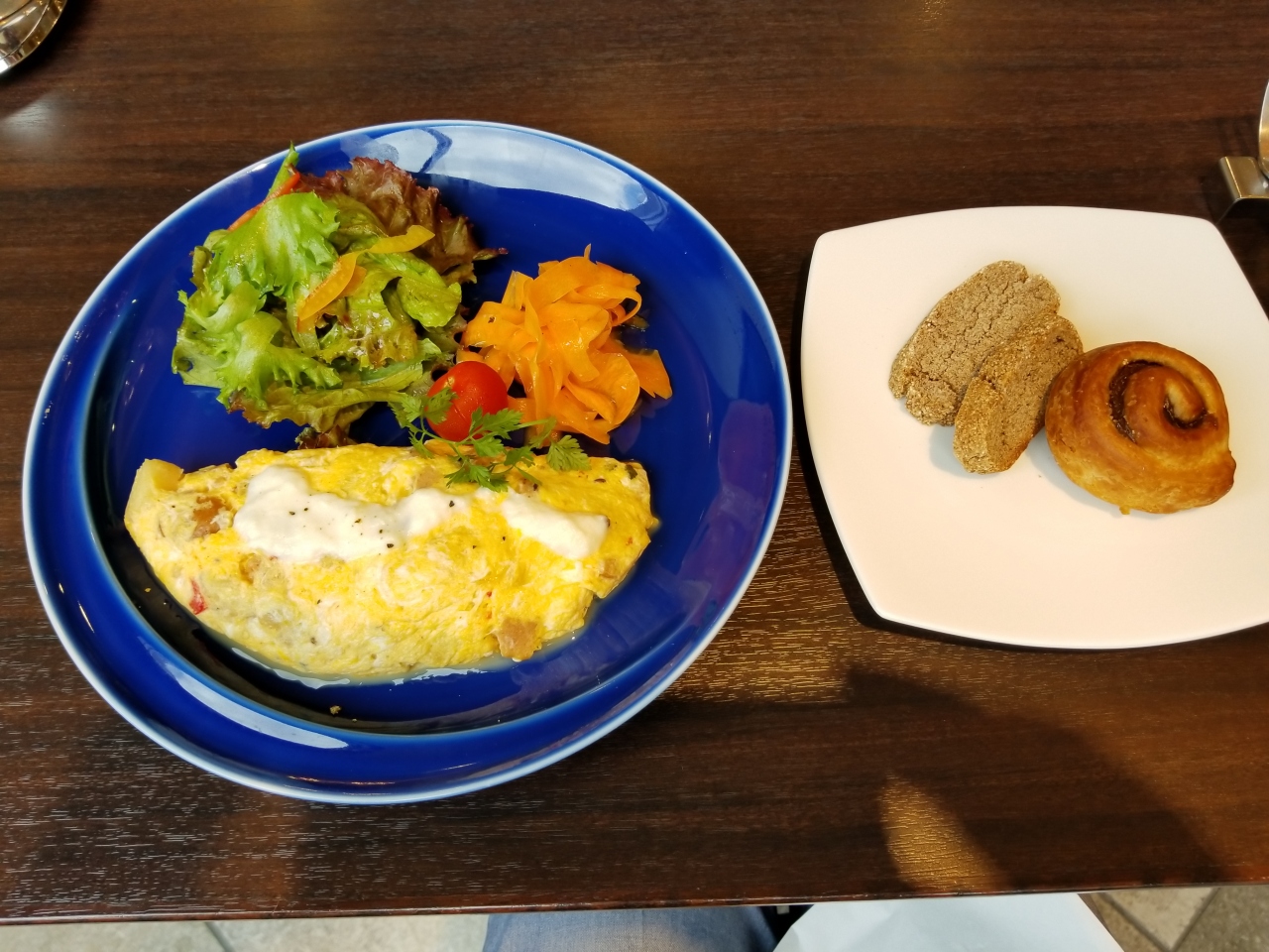 メニューはパンケーキ又はとオムレツ。夫婦でそれぞれをチョイス。