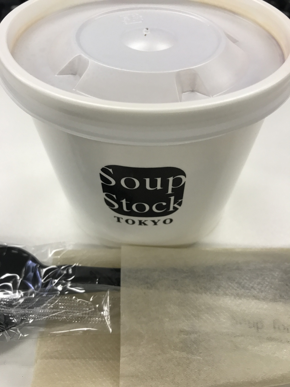 スープストックトーキョーのスープは具沢山なので、スープにパンの組み合わせでも、ランチとしては充分に満足出来ます。お客さんはやはり女性客が多いですね。本日は豚バラ肉のトマトスープのレギュラーサイズが630円。