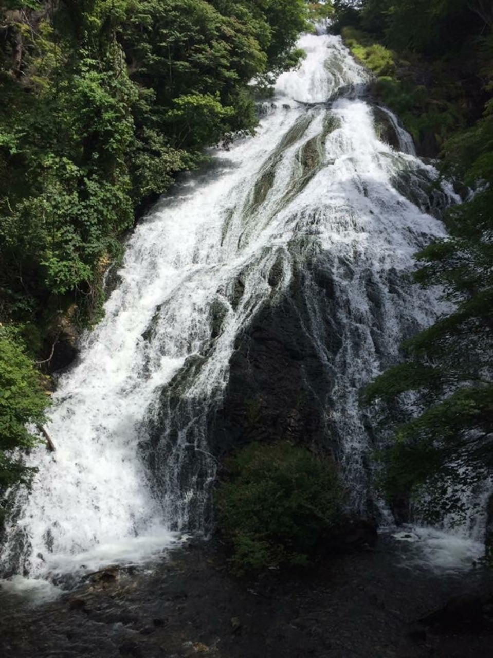宿で教えられてやって来ました。華厳の滝もいいけど、間近に見られる湯滝へぜひ、と勧められただけのことはあります。華厳の滝とは正反対の方へ進み、途中戦場ヶ原を過ぎて奥日光方面に進むと湯滝があります。付近は自然学校のフィールドとあって、学生達がたくさんいます。そんな場所にありました。豪快に岩肌を伝い落ちる滝が。勧められるまま来て見て本当に良かったです。