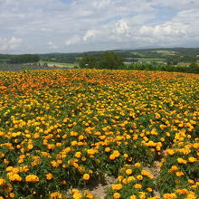 入場は無料、黄色などの華やかな色の花が多い印象で、ラベンダーはそう多くありません。