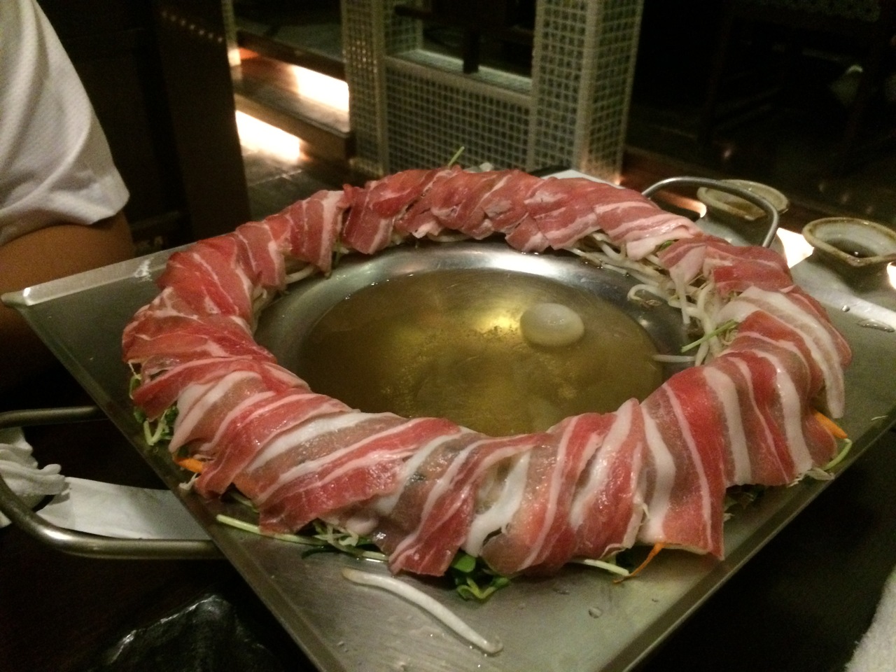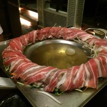 もやしやニラなどの野菜を巻いてシャブシャブしていただきます。