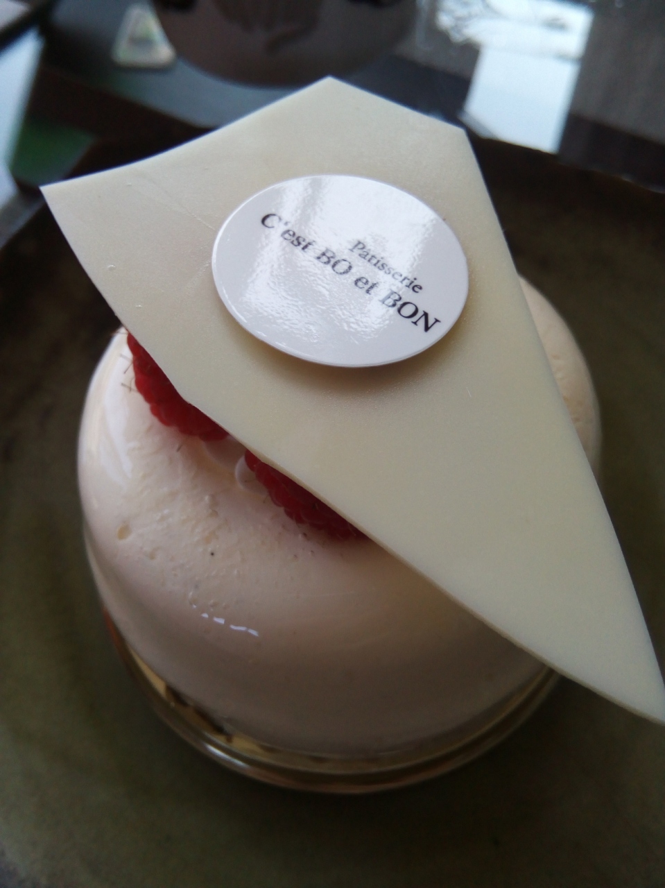 チョコレートは中にレモン味のソースが入っています。バイオレットはクリームがスミレの香り、中に数種類のベリーが入っています。とっても深い味わい。美味しいです。
