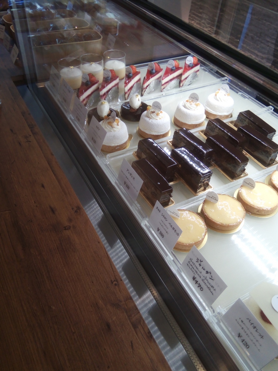 公園の前の、オシャレなビルの一階にあります。店内は洗練され、大きなソファがあります。ショーケースには、ケーキ。店内には他にも焼き菓子やチョコレート、スパークリングジュースなどが売られていました。