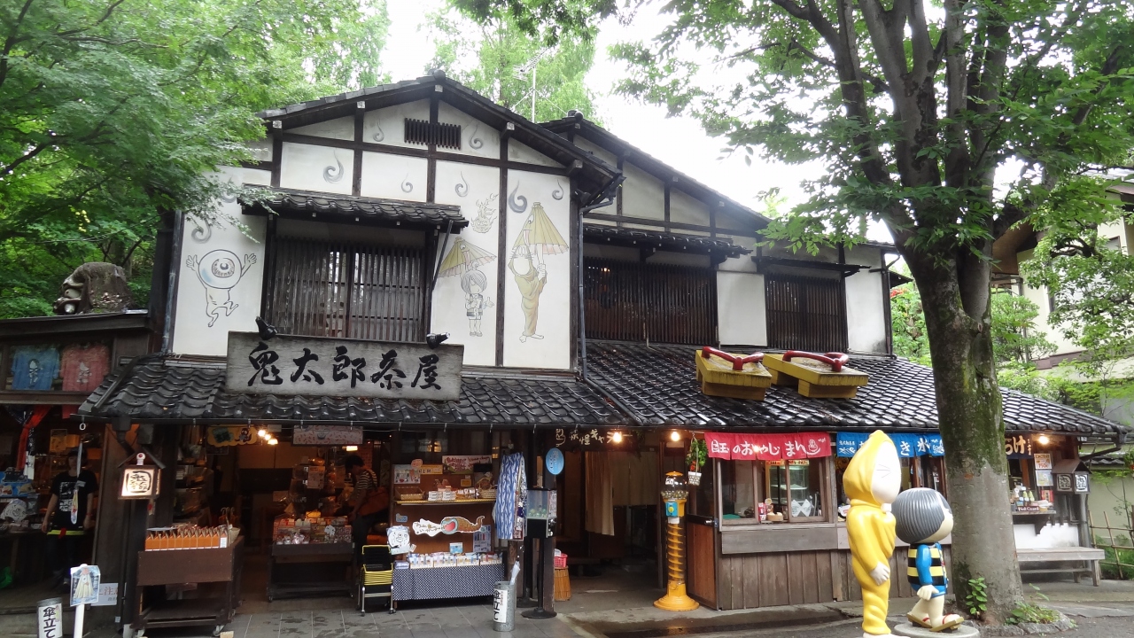 ここの鬼太郎茶屋さんは、深大寺の観光案内所すぐそばにあります。まずその外観に驚きます。下駄が屋根の上に載っているデザインに驚きです。そして店内にある目玉おやじ関係のスイーツにもびっくりです。ソフトクリームやかき氷もあるのですが、どちらかというと妖怪に注意を奪われてしまいます。