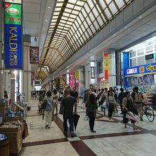 仙台市中心部のアーケード街。雨の日でも傘をささずに買い物ができます。