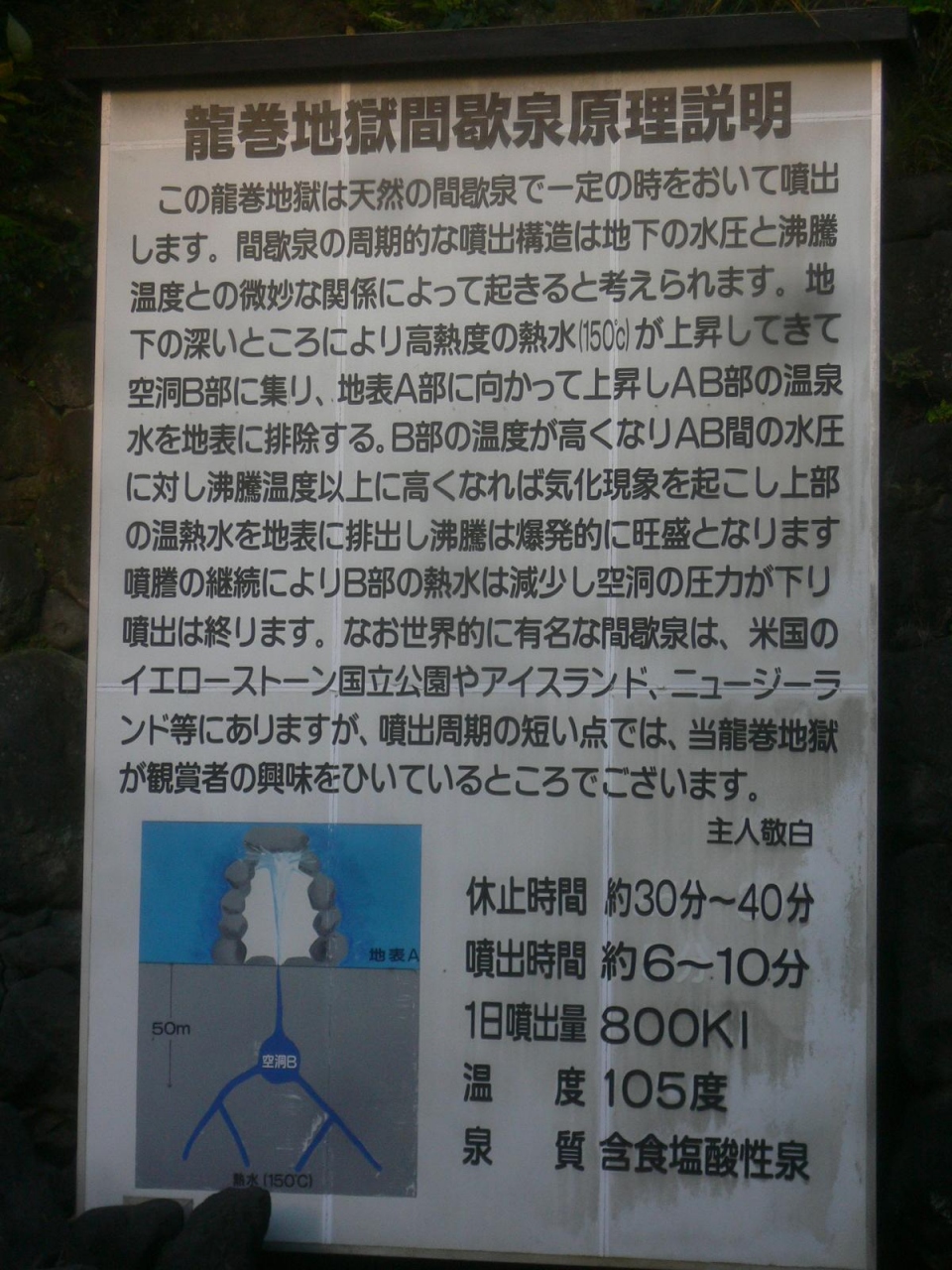 地獄湯八景巡りの中で、ここは間歇泉で、時間で吹き出しますので、アナウンスがあり、スタッフが説明もしてくれました。ここは整備されて、お土産ショツプや休憩所もあり、綺麗な施設でしたので、感じが良く休憩しながら、一服もできました。