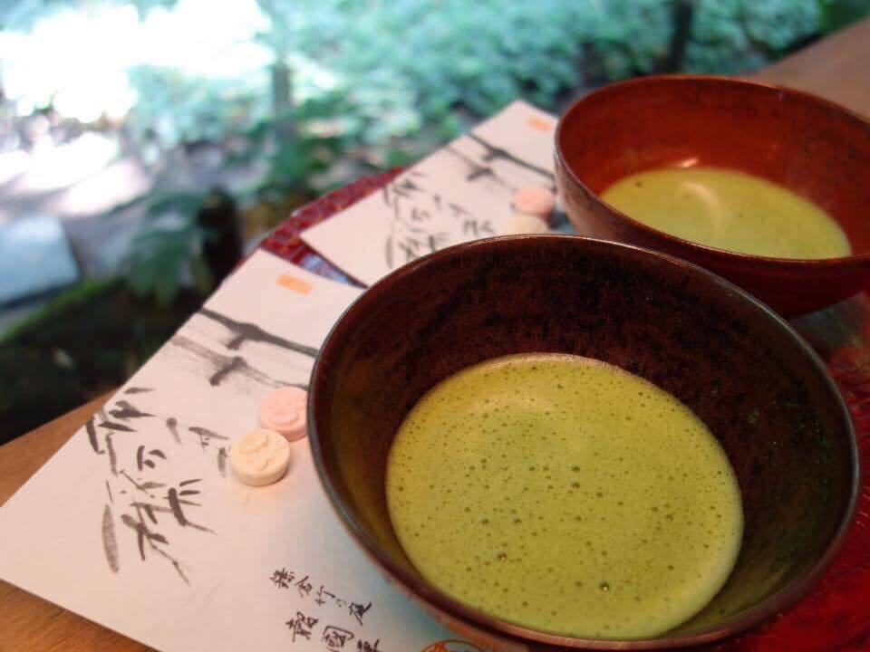 途中のお茶屋さんで竹林を眺めながらいただくお抹茶は格別でした。