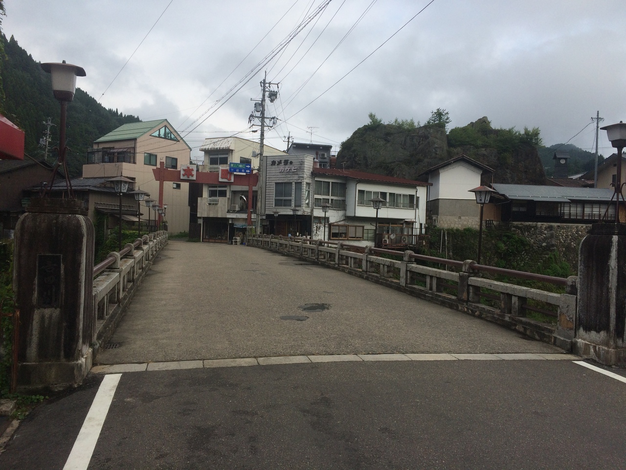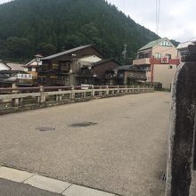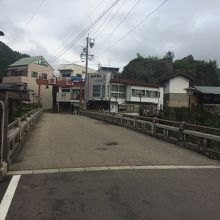 車も人も渡れる橋で橋の脇には喫茶店や店が並んでいて雰囲気が良かったです。橋からは吉田川を見ると川沿いに家々が連なっている景観も良いです。橋から川底までは見下ろす感覚です。昔からあるような橋で風景にマッチしていました。