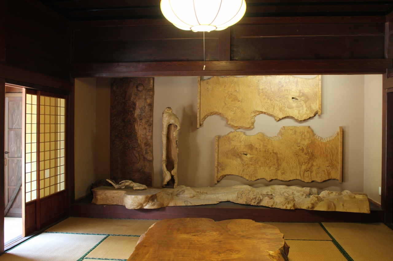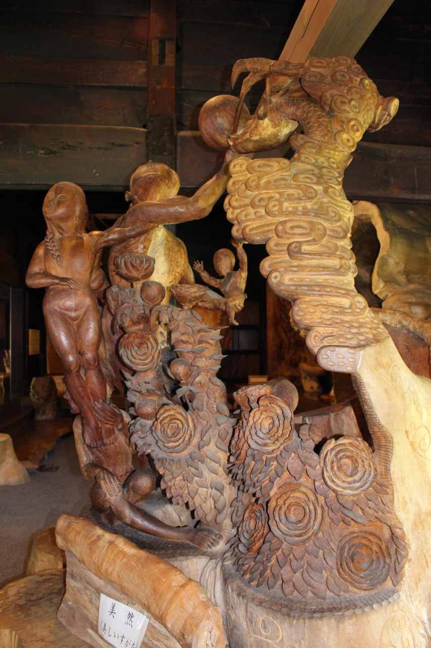 その奥に郷土作家・板谷峰止氏による、木彫りの作品が展示されています。