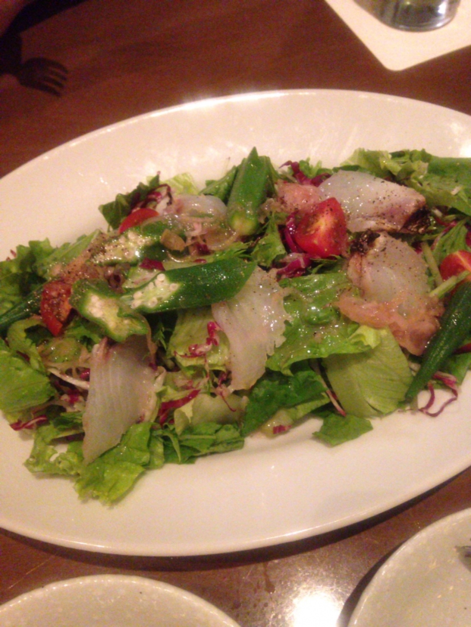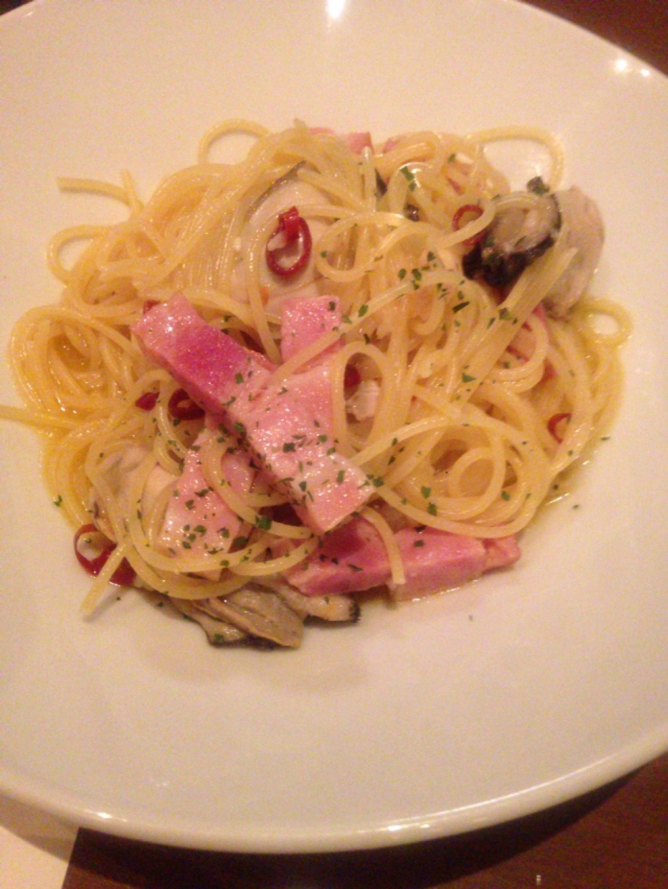 日曜の20時頃、予約せずに入店。混んでましたが、運良く並ばずに席に座れました。しかも窓際で夜景も綺麗。(ラッキー!)本日のオススメ生牡蠣をレモンでいただきました。大きくて新鮮で歯ごたえもあって美味しい!他にもサラダやパスタもぜーんぶ美味しかったです。車で行ってたので、お酒は飲めなかったけど、ワインと一緒に牡蠣を食べたらさらに最高なんだろうなぁと思いました。ごちそうさまでした。