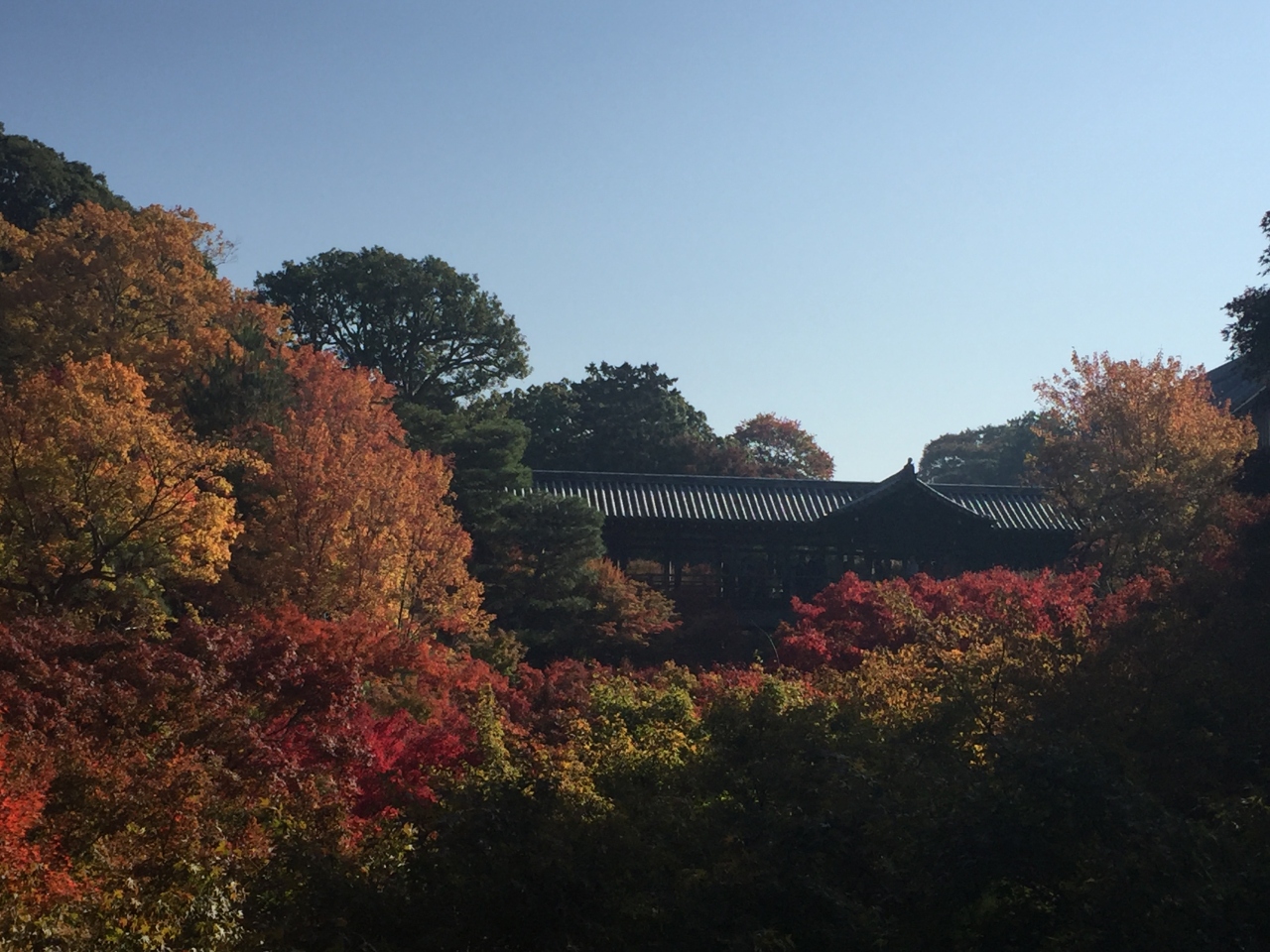 紅葉の名所だけに、混雑することは覚悟していましたが、寺につく前から交通整理が行われているほどでした。
