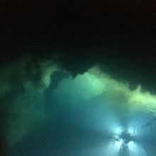 とても大きな鍾乳洞です。水面はとても美しいブルーです。