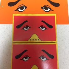 博多の郷土芸能として庶民の間で親しまれている博多仁和加の半面を形どったおせんべい。なんとも言えない顔が特徴で、見た目もユーモアたっぷりでした。
