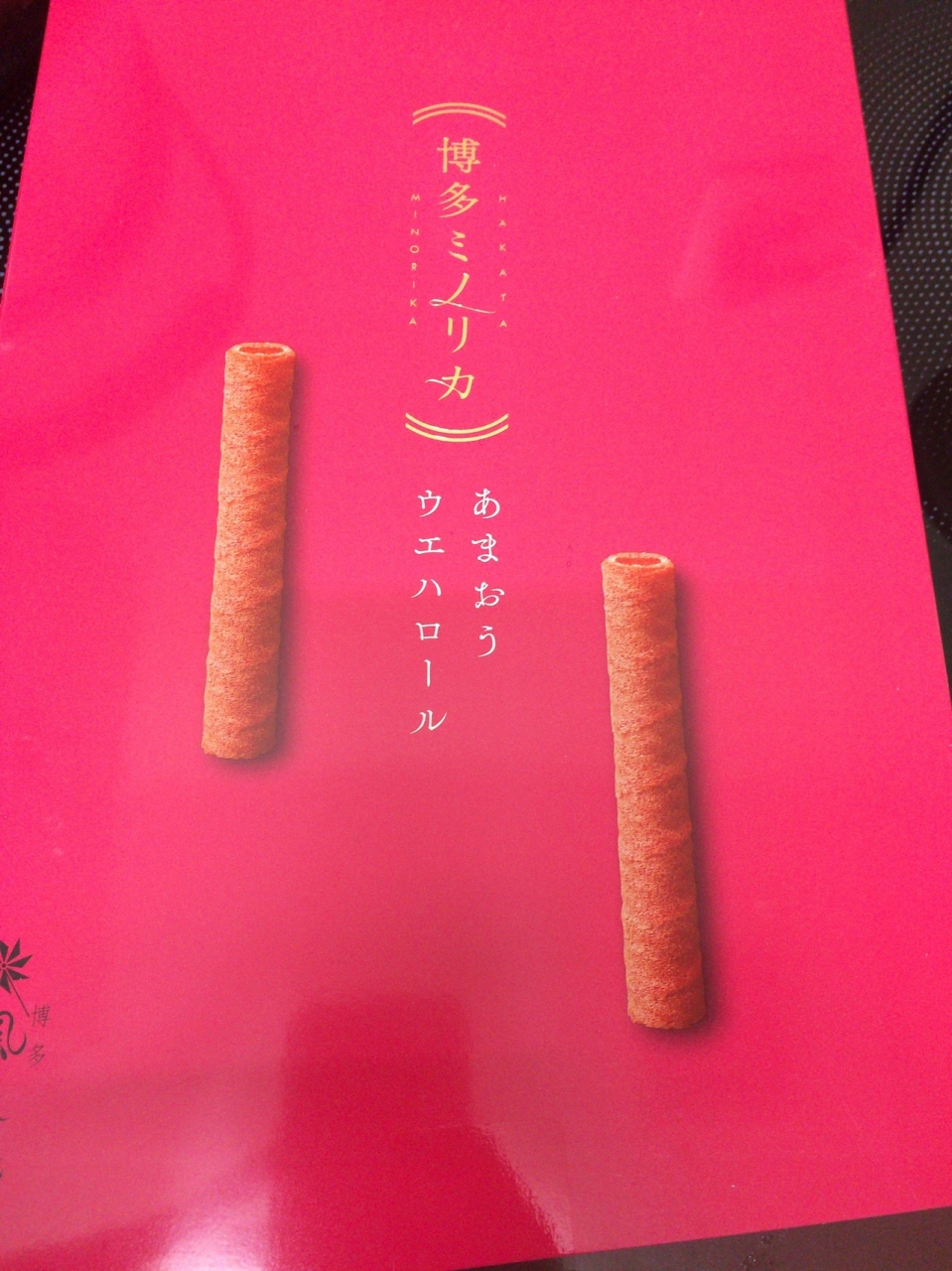 福岡のお土産屋さん。あまおうウエハーロールを頂きました。博多風美庵は色んなお土産を売っているので、福岡のお土産として最適です。