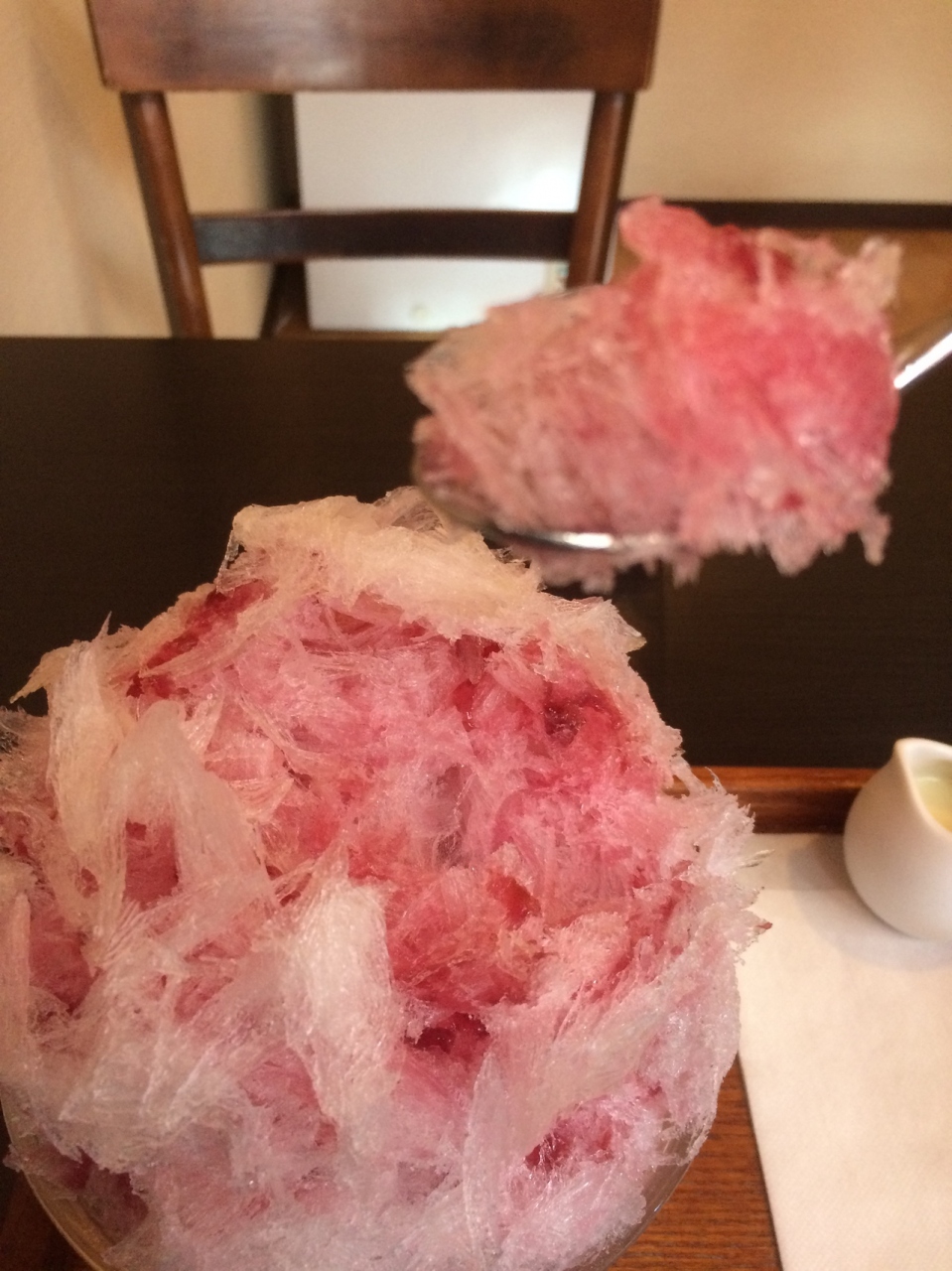 カンナで削ったような薄い薄い氷は口に入れるとふわりと消える。