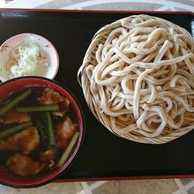 千葉なのに武蔵野うどんのお店で、農産物直売所の敷地内にあるのですが直売所よりうどん屋さんの方が混んでいます。店の中に入って注文をして番号札をもらって出来上がりは持って来てくれました。ログハウス風の外観で店内は安っぽい作りです。つけ麺の肉うどんとカレーうどんにして太麺と細麺のあい盛りを頼みどちらも美味しかったですが、細麺でも普通のうどんより太いのですが太麺の太さにはびっくりしてしまいました。