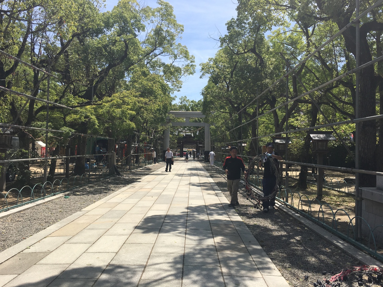 楠木正成ゆかりの神社。楠木正成というと鎌倉時代、後醍醐天皇の時代じゃないか?ということで、大変古いもの。結われがそうであって建物は戦後のもの。境内は広く静かであるが生ビール大会かも昨日開かれていたとのことで、後片付けの最中。お参りして御朱印をいただきました。