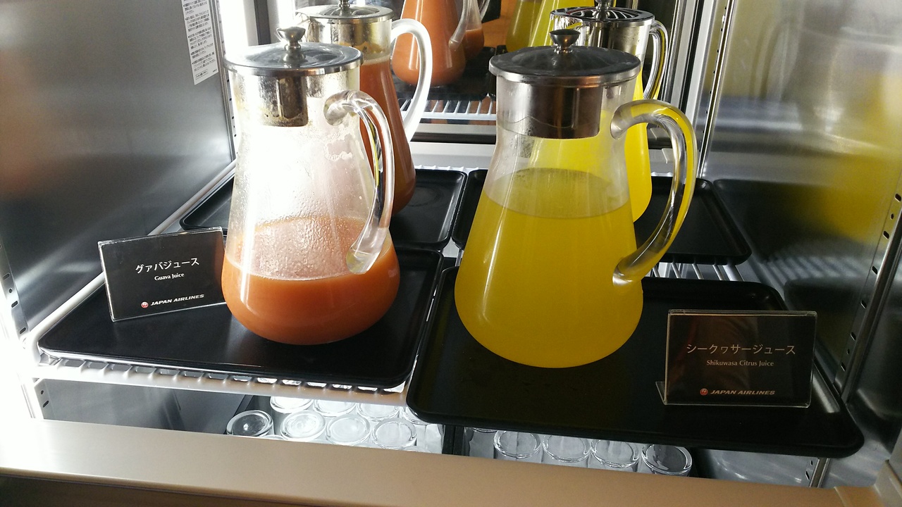 雰囲気は、伊丹とか、福岡とか、他の空港のサクララウンジと同じで、それほど広くはありませんが、グアバジュースとか、シークアーサージュースがあります。これ、ここだけ…かな?