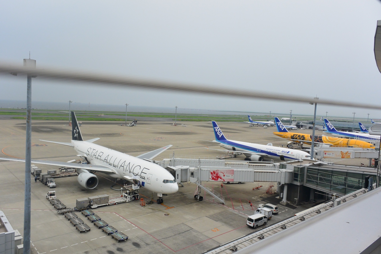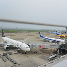 期間限定のスターウォーズの飛行機が駐機しているのが見えました。ただ、この時期デッキはほんとうに暑くて、「熱中症に注意」の張り紙も実際出ていました。デッキに出る場合は暑さ対策は万全に!ミストが出ていて、売店ではかき氷も売っているようでしたが。