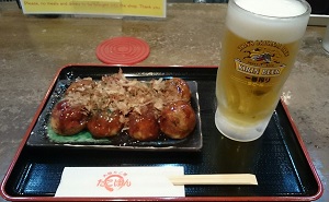 外国に行き帰国すると和食が食べたくなります。そんな時についつい立ち寄ってしまうのがたこぼんです。成田空港の第二ターミナルにあります。到着ロビーは一階なのに、三階の出発ロビーを抜けて四階にたこぼんに行くのは不思議な感じですが、おいしいたこ焼きとビールはたまらないのです!支払いにスイカも使えます。