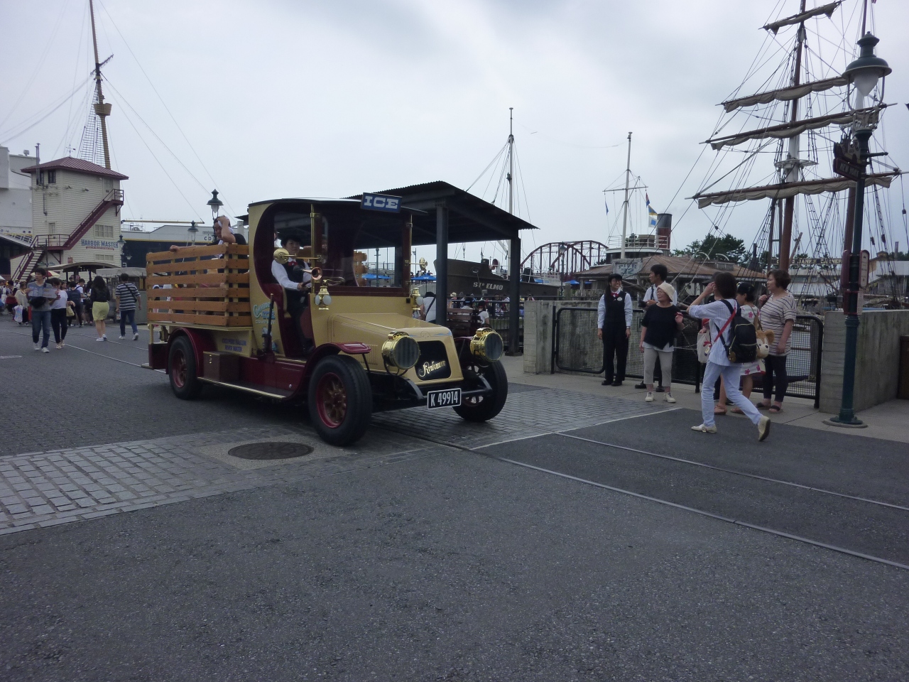 アメリカンウォーターフロントの運河沿いに乗場がある、丁度車と馬が混在した時代の映画に出てきそうなクラシックカーに乗ることが出来ます。こちらの車は、映画よりも遅い、そして更に歩くヒトよりも遅いスピードなので、車窓をゆっくり楽しむことが出来ます。