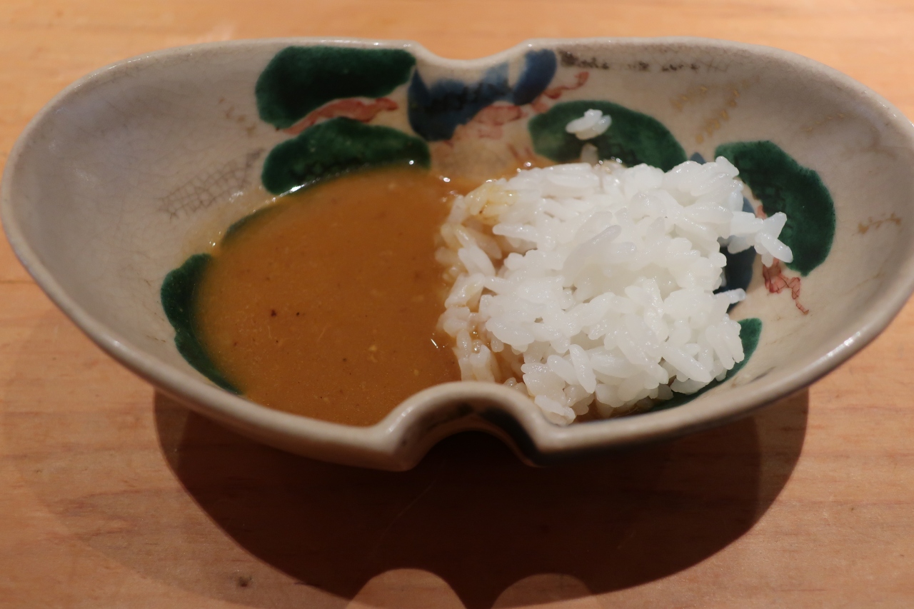 驚いたのは最後の閉めにだされた一口カレーライス。フレンチでカレーライスと思いましたが、スープ仕立てのカレーがとっても美味しく、ついお替りしてしまうほどでした。