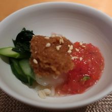 四条通りから少し上がった祇園にあるフレンチ懐石料理のお店です。町家風のお店は1,2階共にカウンター席。予約して行ったところ2階席に通されました。頂いたのは5000円のランチコース。旬の食材を洗練に調理した料理が、色とりどりの美しい器に盛られ、味だけでなく、視覚的にも楽しむことが出来ました。明るい雰囲気もとても良いです。
