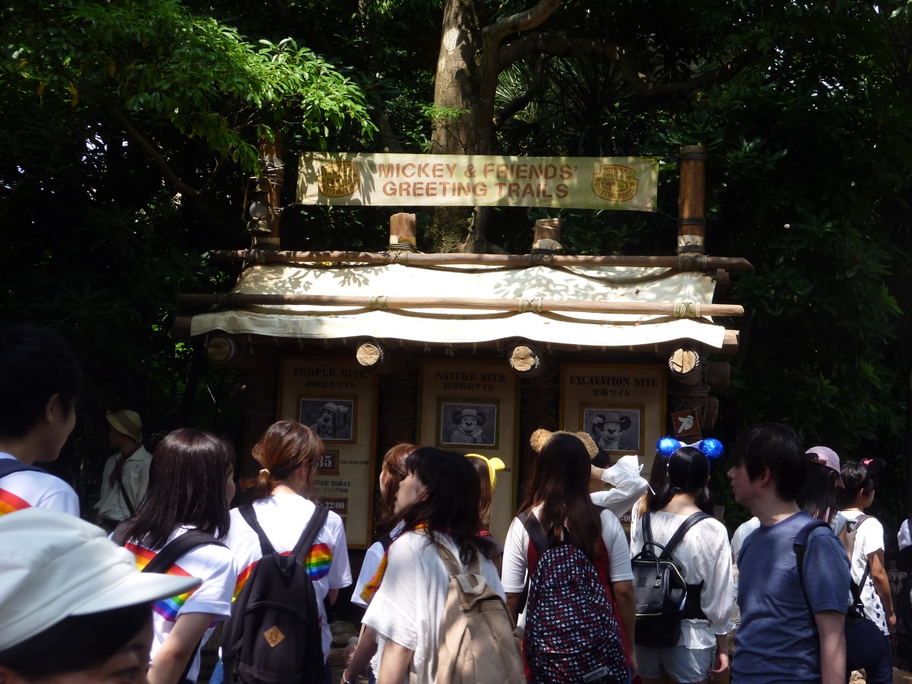 ロストリバーデルタらしいグリーティングスポットです。場所もエリアの左手の奥の奥だけに、探検気分も盛り上がる。インディージョーンズらしい探検家のイメージから、キャラクターも探検家達が出てきてくれます。ミッキー、ミニー、グーフィー、結構グーフィーが一番探検家らしいかも。
