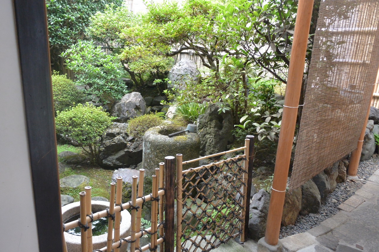 御座敷に上がって小さな日本庭園を見ながらあぶり餅を味わい、まったりしました。お向かいのかざりやさんにも行きましたが、どちらも美味、一文字和輔さんのほうがお餅が多少歯ごたえがしっかりしている感じがしました。お茶は茶瓶ごと出してくれます。