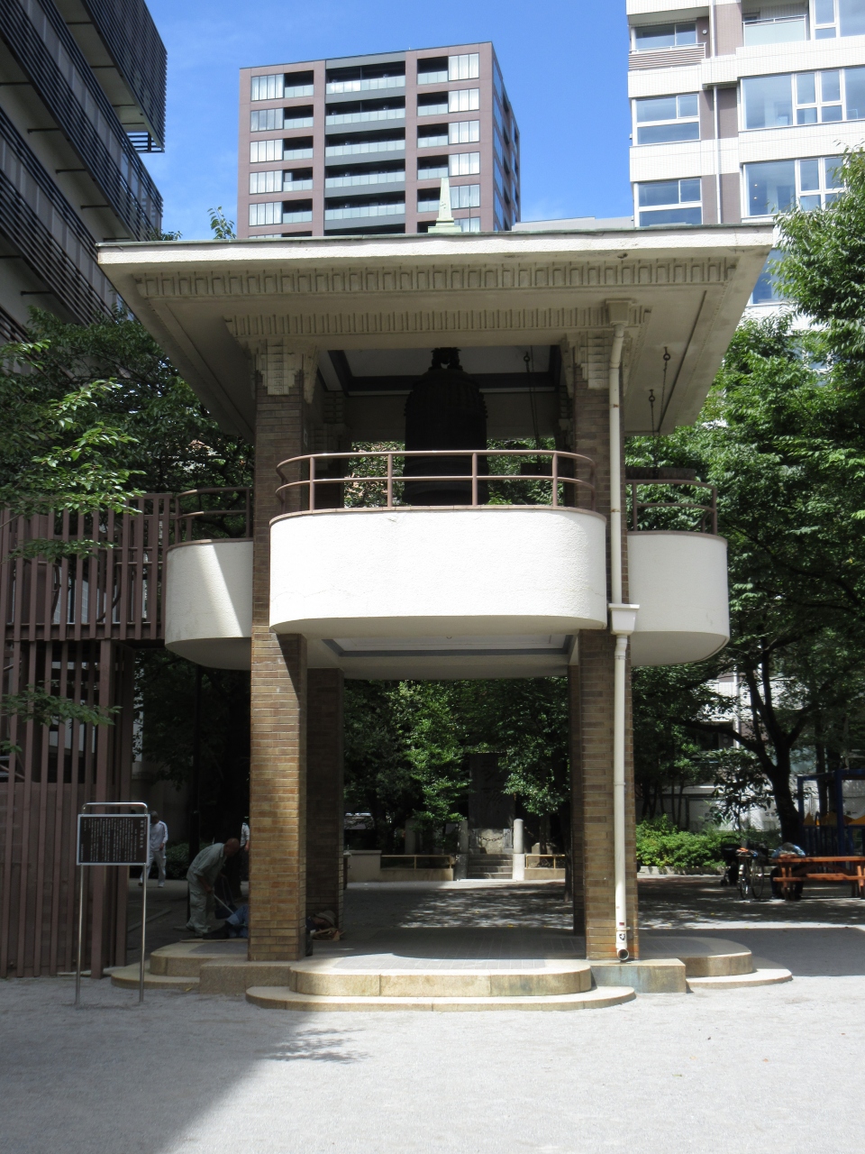 小伝馬町駅のそば十思公園内にあります。児童遊具がある公園に違和感ないコンクリート製の鐘楼が建てられていてその中に銅鐘があります。鐘楼の下は何もなく訪れた時は人が寝転がっていました。江戸の最古の時の鐘は室町三丁目交差点近くにありましたが、1930年に現在地に移されました。江戸時代何度か火災にあい1711年に鋳造されたものが残っています。十思公園内には遺構や記念碑などがあります。あわせて見てはいかがでしょうか。鐘撞堂があった場所に説明板が立っているので訪れることをおすすめします。