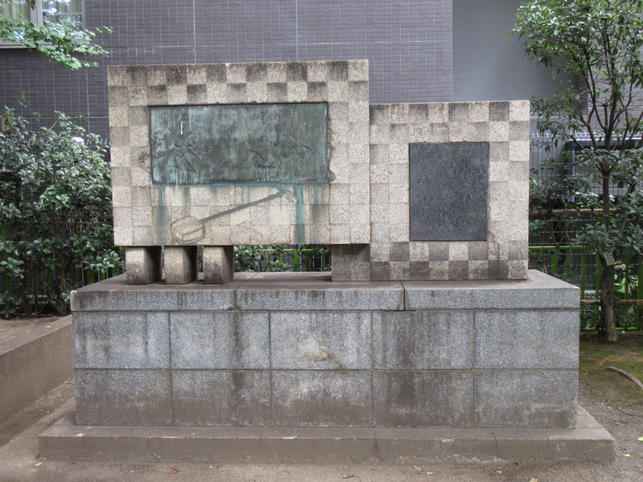 小伝馬町駅のそば十思公園内にあります。どっしりした石造の台に歌舞伎のレリーフと説明がはめ込まれています。説明を読もうとしましたが難しい内容が薄い字で彫られていて読みにくかったです。1933年に建立された記念碑です。杵屋勝三郎は長唄三味線方ですが、詳しくは知りませんでした。十思公園内には遺構や時の鐘などがありおすすめします。長唄に興味のある方は訪れてはいかがでしょうか。