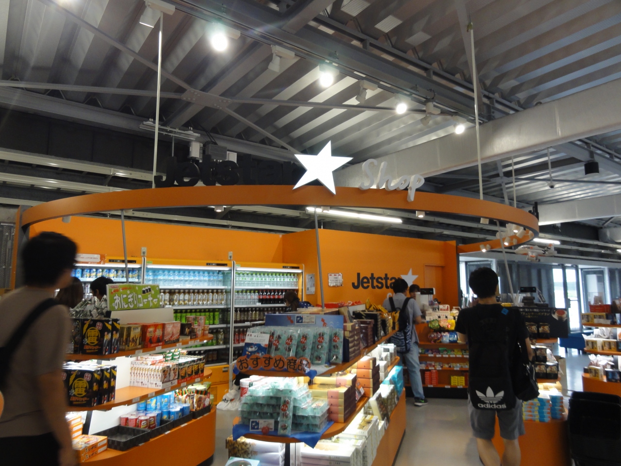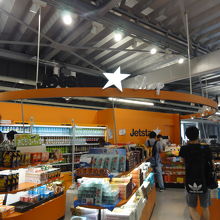機内サービスない分、必要なものはここで調達出来ますという品揃です。ジェットスターのブランケットやキーホルダー等のコーナーの他、空港土産もありますが価格はリーズナブルです。機内で飲めないアルコールも販売、搭乗ゲート近くにあるので便利でした。