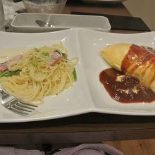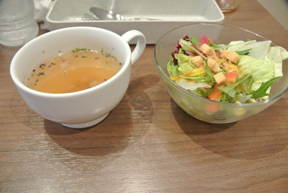 店内は明るくきれいで、女子が好きそうな感じのインテリアですが、オムライスとパスタ(単品よりは量が少なめ)、スープ、サラダのセットはボリュームたっぷりでお腹がいっぱいになりました。特に、オムライスはやはりおいしかったですね。