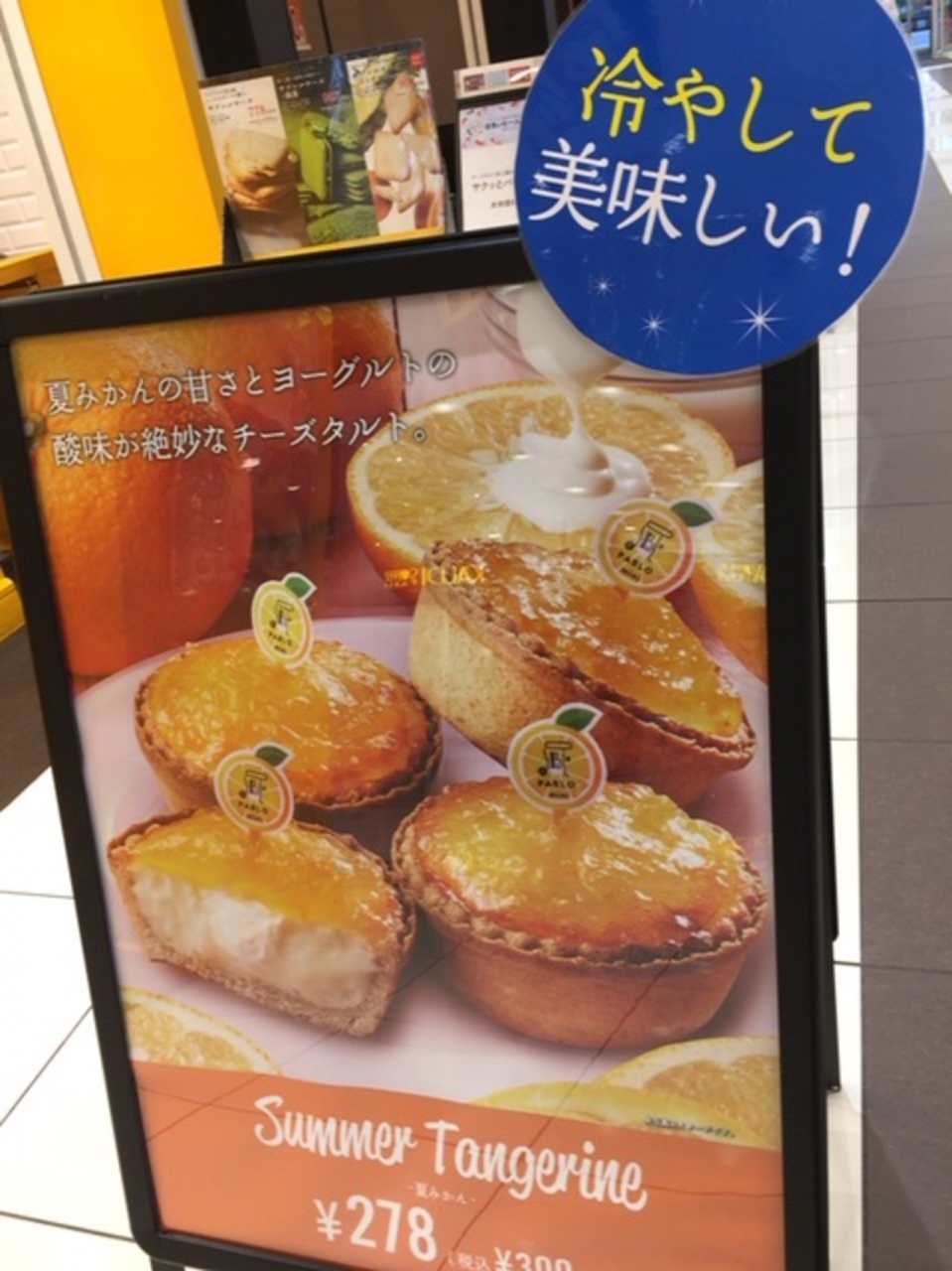 チーズタルトPABLOminiがオープンしてたので 予定外に購入することにしました。夕方だったからか 行列もなかったので即買えました。1番大好きなプレーン(185円)を購入しましたが、summer tangerrine (278円)が、ヨーグルトと国産の夏みかんの味のタルトも美味しそうでした。