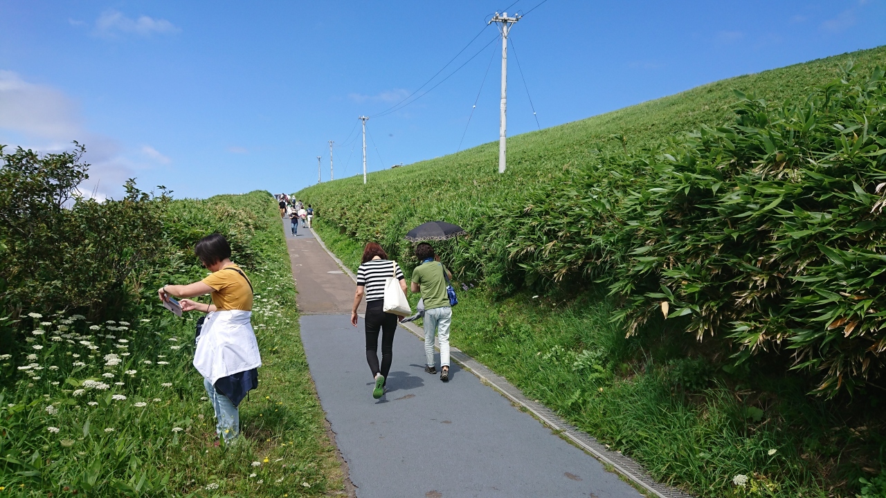 海に突き出た細長い岬の稜線にそってアップダウンの激しい遊歩道がありました。真夏だったのでかなりハードでしたが、それでも歩く価値のある絶景です。駐車場より岬の突端は標高が低いので、帰りは登りが長くて大変です。体力に応じて休み休み歩きましょう。