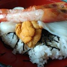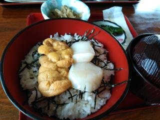 ウニとホタテのどんぶりにしました。値段は2200円、量は少な目でしたが味は新鮮でおいしかったです。