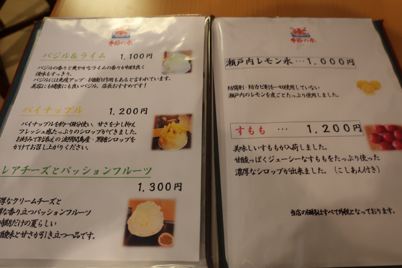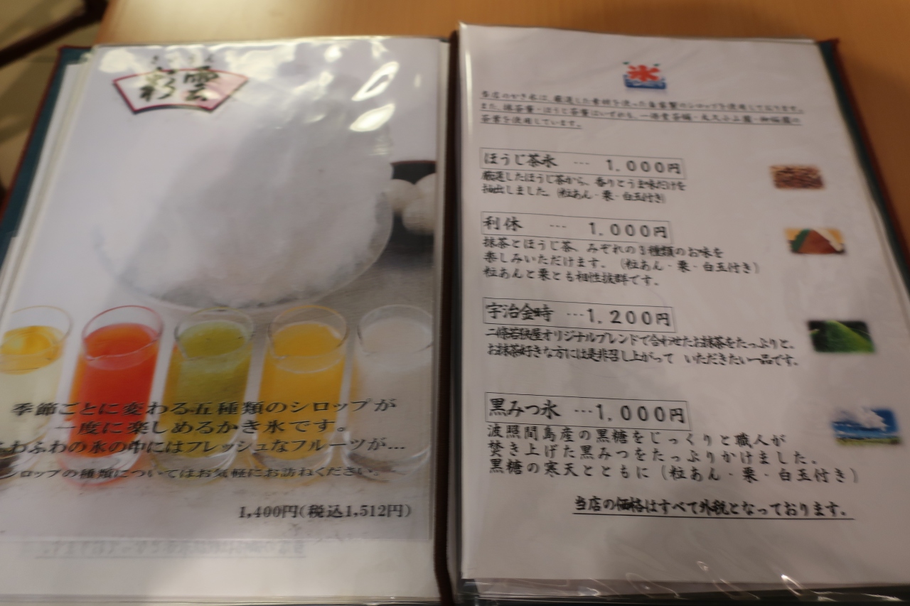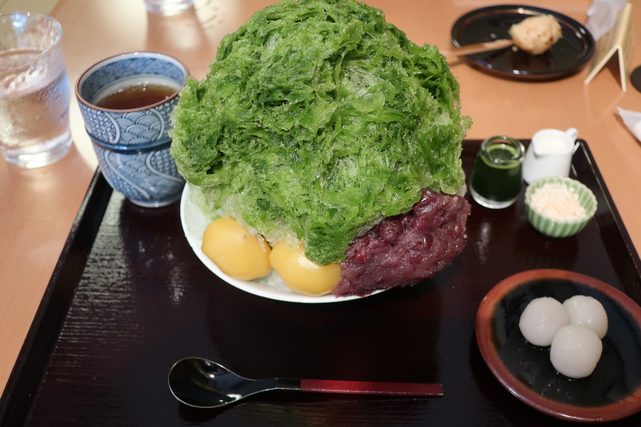 お目当てにかき氷はマンゴー味等目新しいものもありましたが、伝統の抹茶かき氷を頂きました。餡と白玉の入ったかき氷は上品な味で体がすーっと冷たくなります。京都の夏はかき氷が美味しいです。
