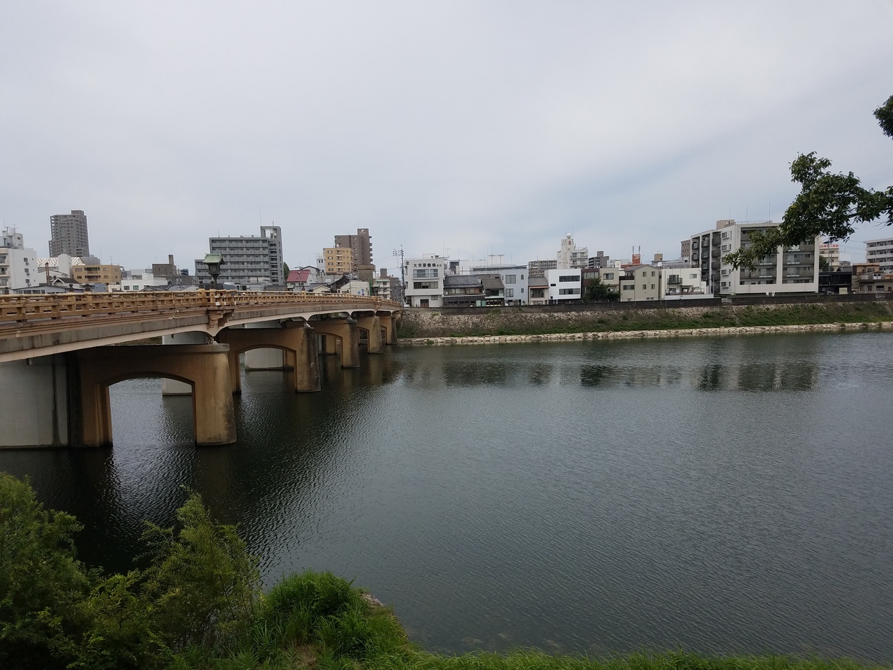 いくつか橋がかかっており鶴見橋は趣のある橋で後楽園に通じてます。