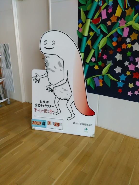 北斗市の公式キャラクター「ずーしーほっきー」の大きなパネルが待合室に飾られています。このキャラクター巷では結構人気があるみたいです。勿論売店にはキャラクターグッズも販売しています。