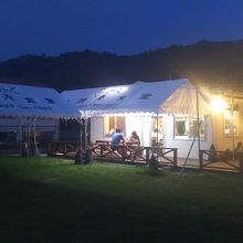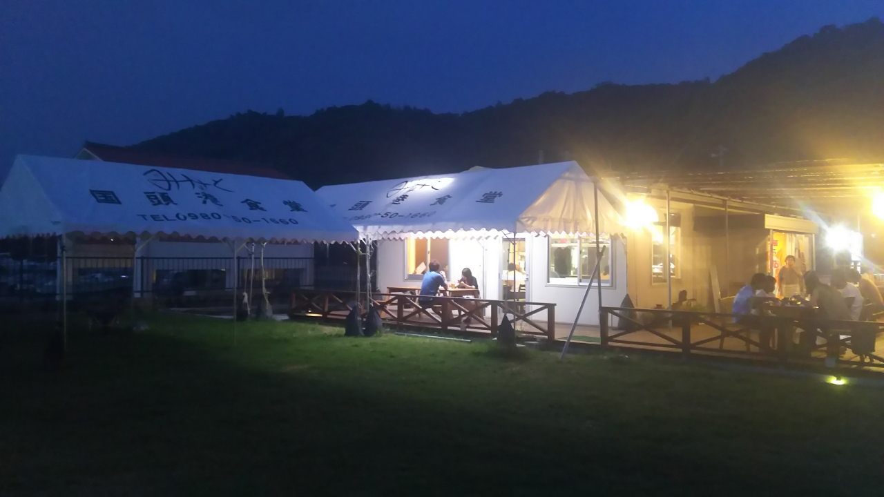 オクマリゾートから無料送迎サービスがあるので利用しました。テラスでワンちゃんと一緒に夕食をいただけました。海鮮が新鮮で、沖縄料理もあり最高でしたね。値段もリーズナブルで、お酒も安かったです。海の景色も最高でした。