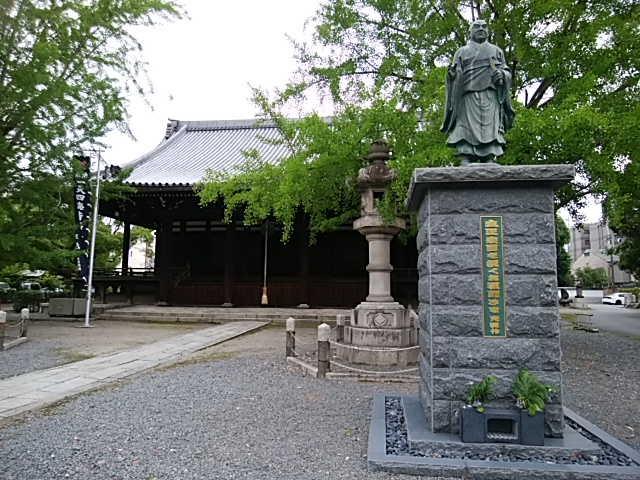 日蓮宗のお寺、頂妙寺です。仁王門通の名の由来は、こちらのお寺の仁王門からきているんだそうです。仁王門をくぐった正面には、日蓮の像がそびえています。