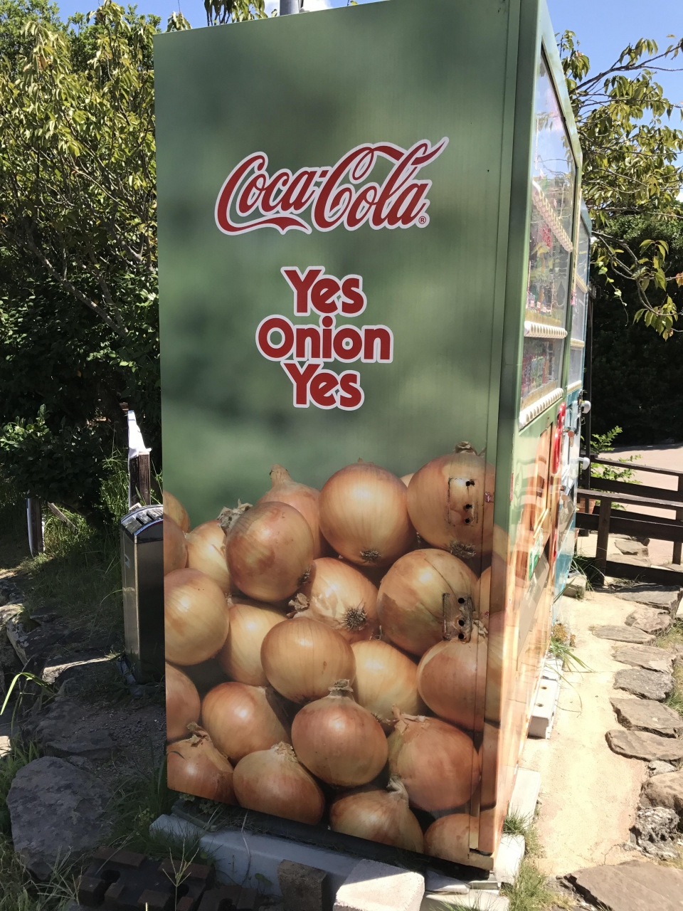 玉ねぎ推しがすごくて、自動販売機には「yes onion yes」という