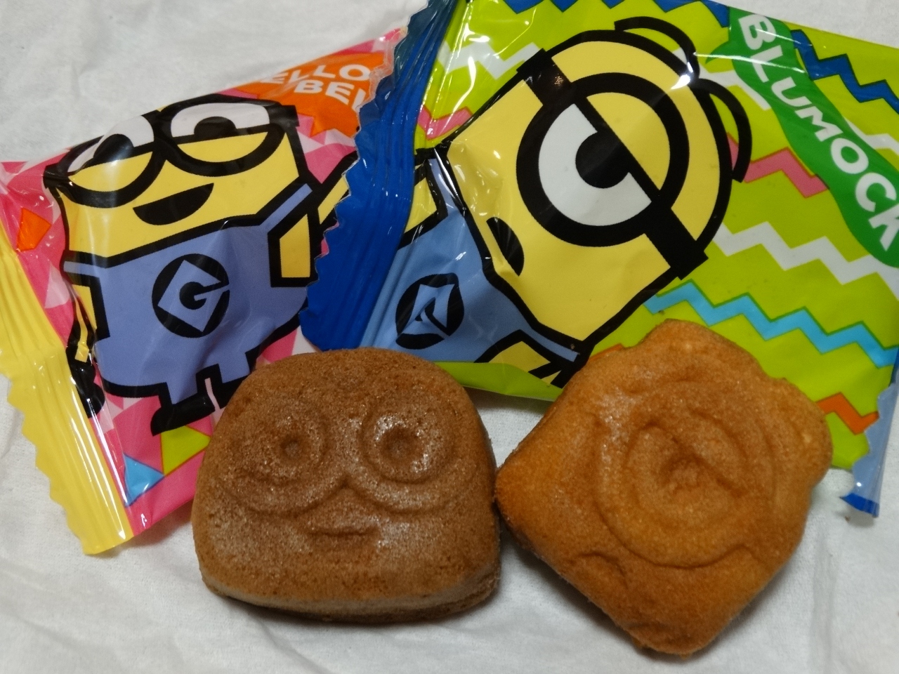 ミニオンの人形焼きを発見しました~*^^*もう本当にとっても可愛くて、食べるのを思わす躊躇してしまいますが・・・しっかりと美味しくいただきました^^;;プレーン、ココア、バナナミルク味の3種類がセットになってます~