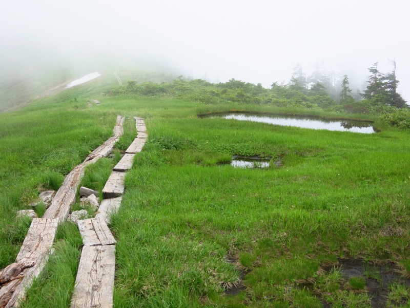 会津駒ヶ岳山頂は眺望は一切なしで登頂記念の写真を撮ればやることがありません。