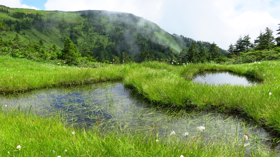 しかし、駒の池から山頂を巻いて中門岳に至る稜線は、高層湿原となっており、まさに「天空のお花畑」です。
