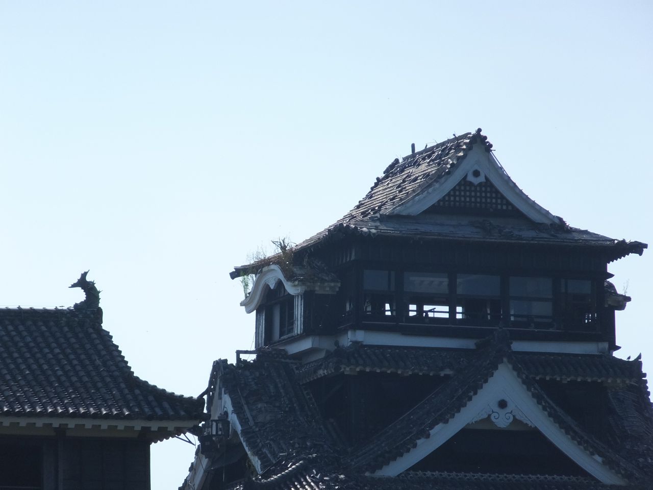 2016年の震災で城の中核部には入場はできませんが、周囲を歩くのと、天守閣近くの加藤神社には入ることができます。なのでだいたいの櫓群は天守閣も含め外観の見学は遠望ながらも可能です。ただ、やはり城は登城してこそ。屋根に草の生えた天守閣も寂しいですし、1本の隅の石垣だけで支えられた櫓も痛々しかったです。復旧を長く待ちたいと思います。