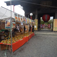 9月4日、正午と午後3時に花火を打ち上げられた。その音でこの日が大聖寺の梨市が行われる日であることを知る。山門前で梨が売られている程度で梨を売る屋台はこれだけだた。本堂に続く参道には金魚釣りや射的などのおなじみの屋台が並んでいた。夜にはカラオケ大会が開かれる告知が貼ってあった。