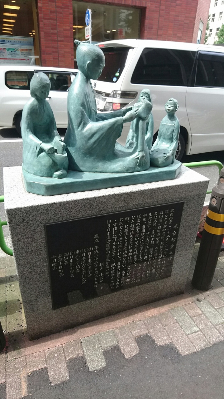 八重洲通りをちょっと入ったところにお医者さんのような人が子供を診察している像がありました。歩道の端にあるので気をつけておかないと見つからないような像でした。幕末に活躍した尾台榕堂という漢方の名医で、日本漢方医学の基盤を築いた人だそうです。