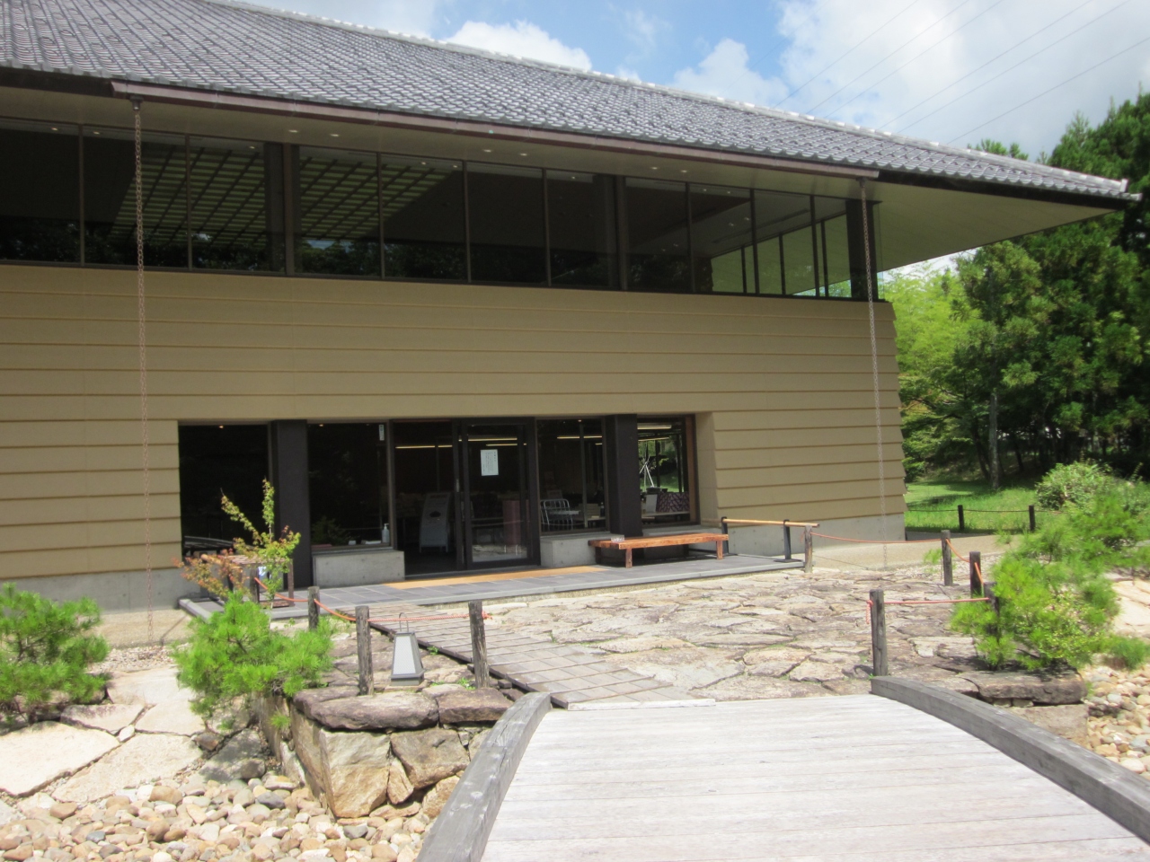 その駐車場からしっくりとした細道を進むと、枯山水の大きな池を望みながら橋を渡ると大きな和のテイストの建物がいくつも並んでいるのが工場なんでしょうか?。
